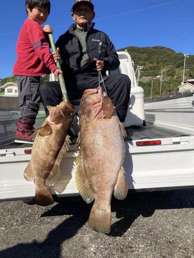 泳がせ釣り。坂井さんクエ二匹。