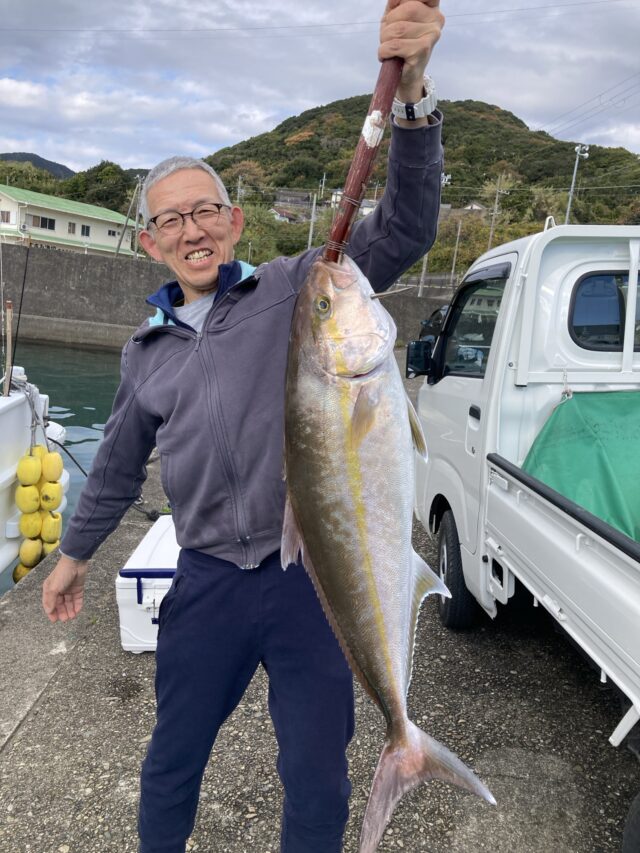 泳がせ釣り。小笠原さん、カンパチ100㎝1匹。本命のクエの当たりは無かったです。
